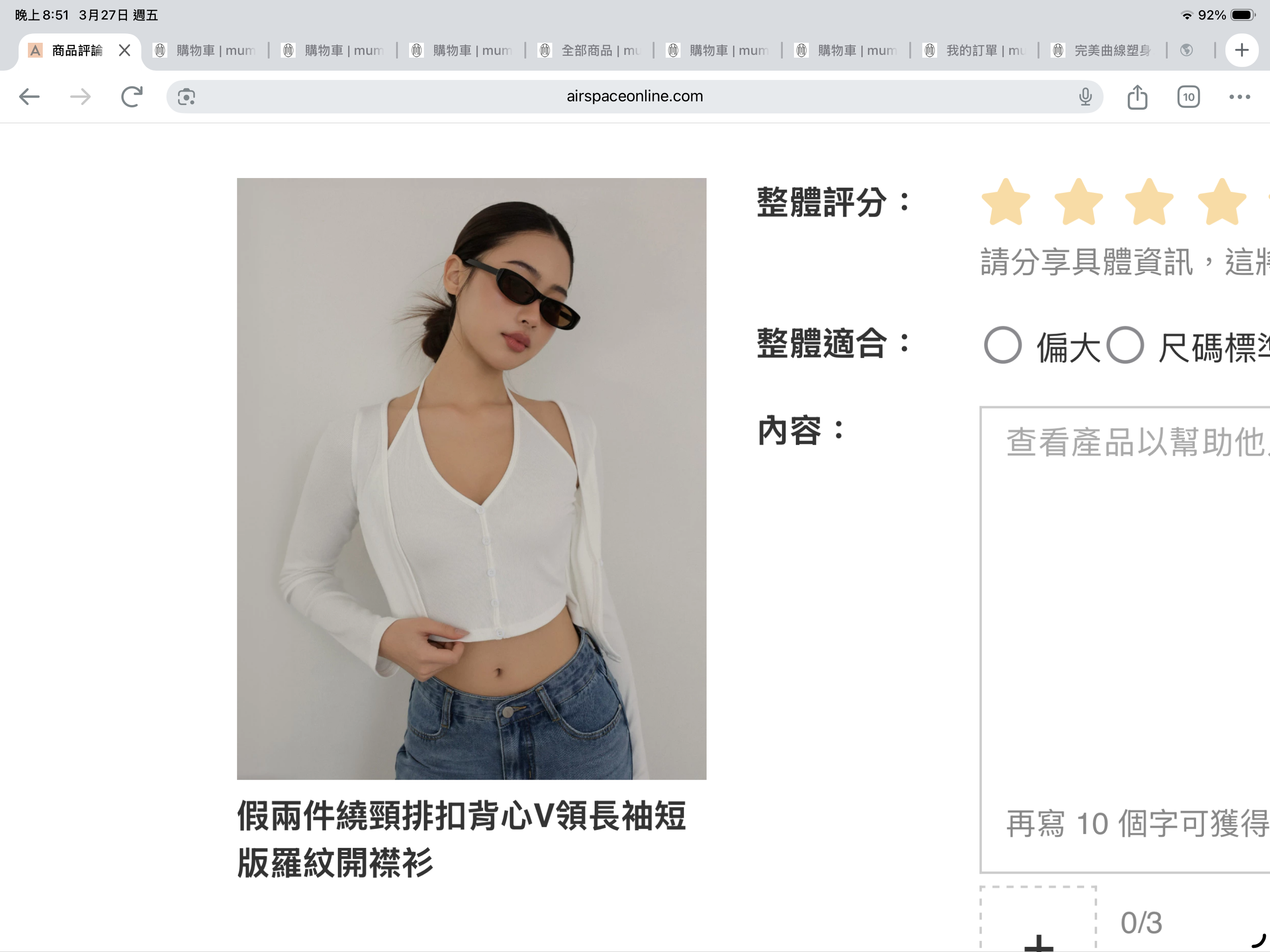 衣服很好看,深藍很顯白,比較可惜沒有附BRA