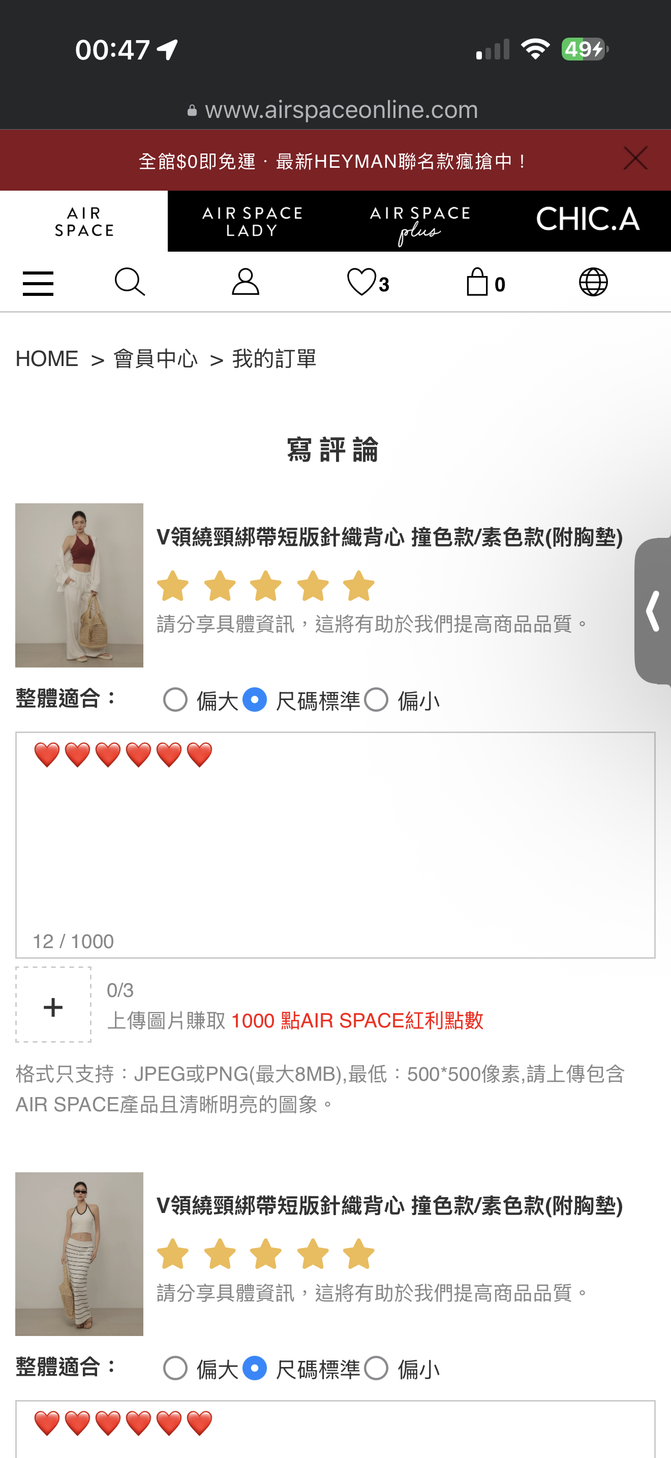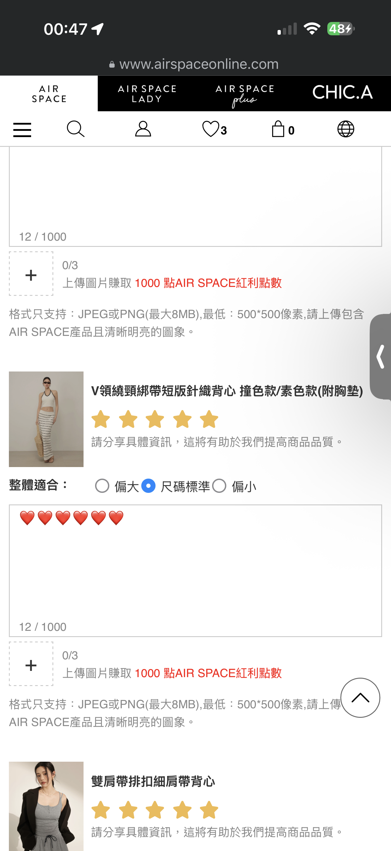 | 版型 | 貼身 | 1 | 2 | 3 | 4 | 5 | 寬鬆 |