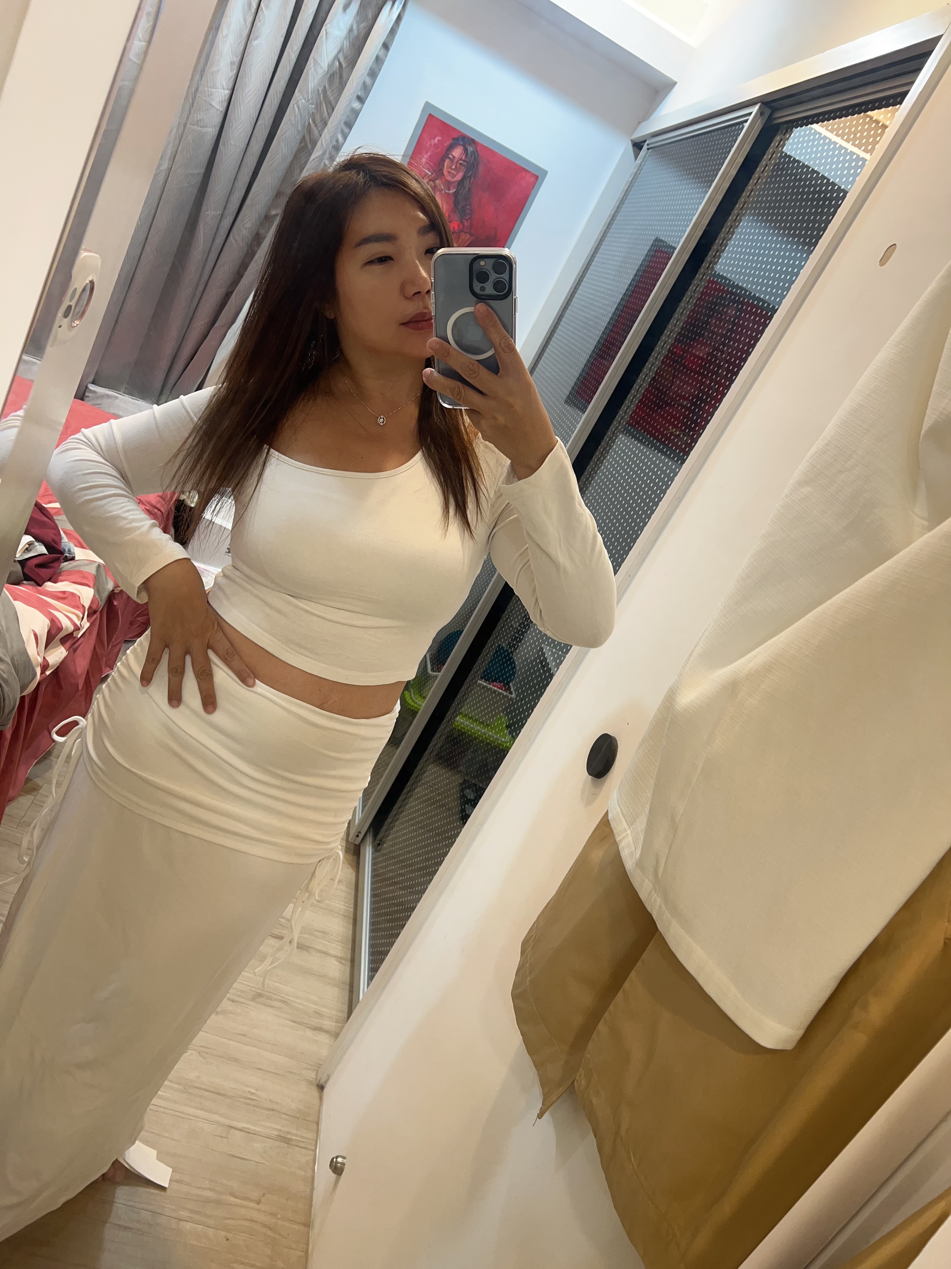反摺鬆緊腰設計舒適零束縛,為簡約裙身增添豐富的視覺層次。側邊抽繩設計可隨心調整褶皺的程度,並適度修飾腰腹與臀部的線條,讓魚尾長裙穿起來顯瘦、順身,邁步間盡顯流暢美感。