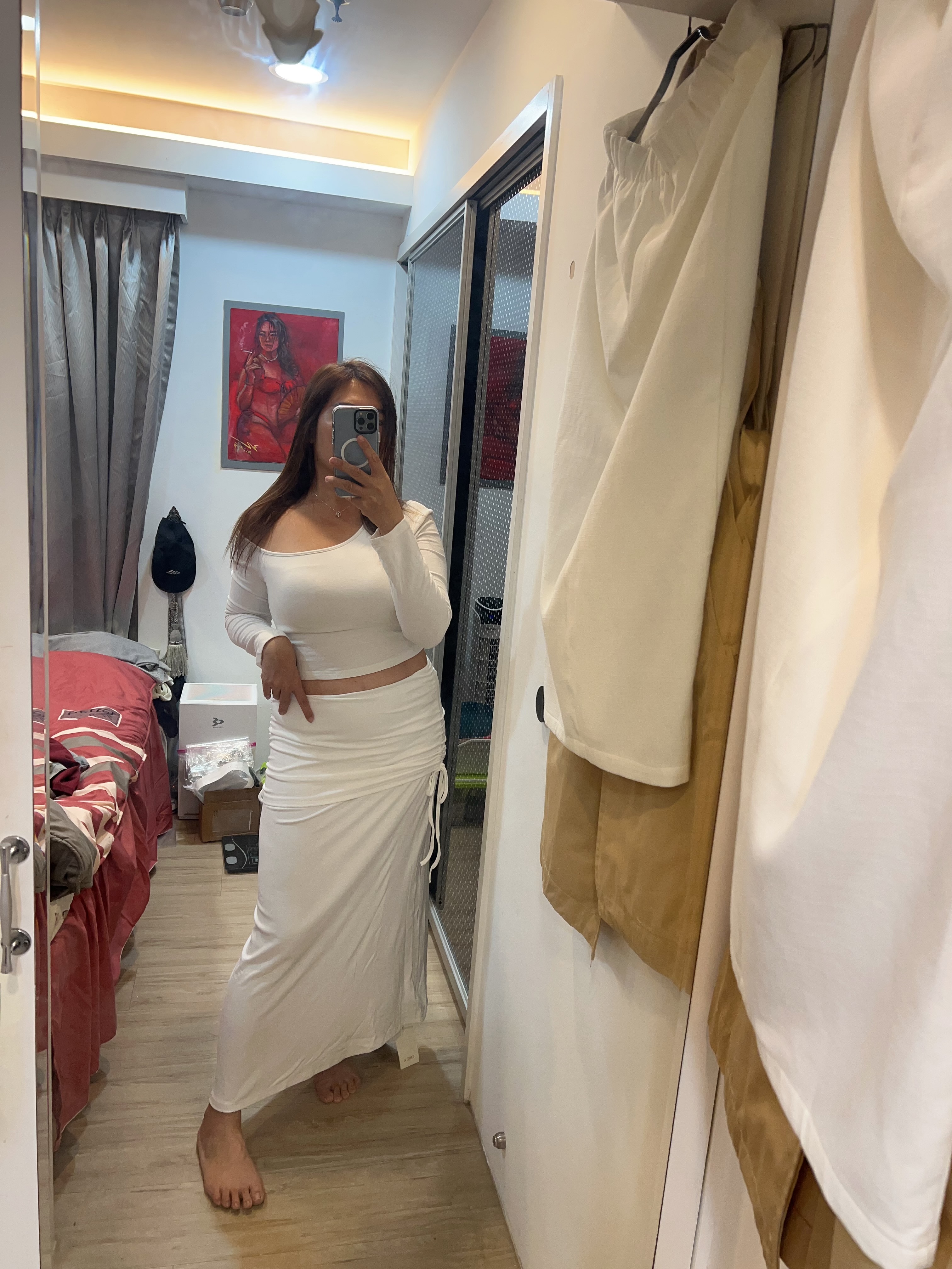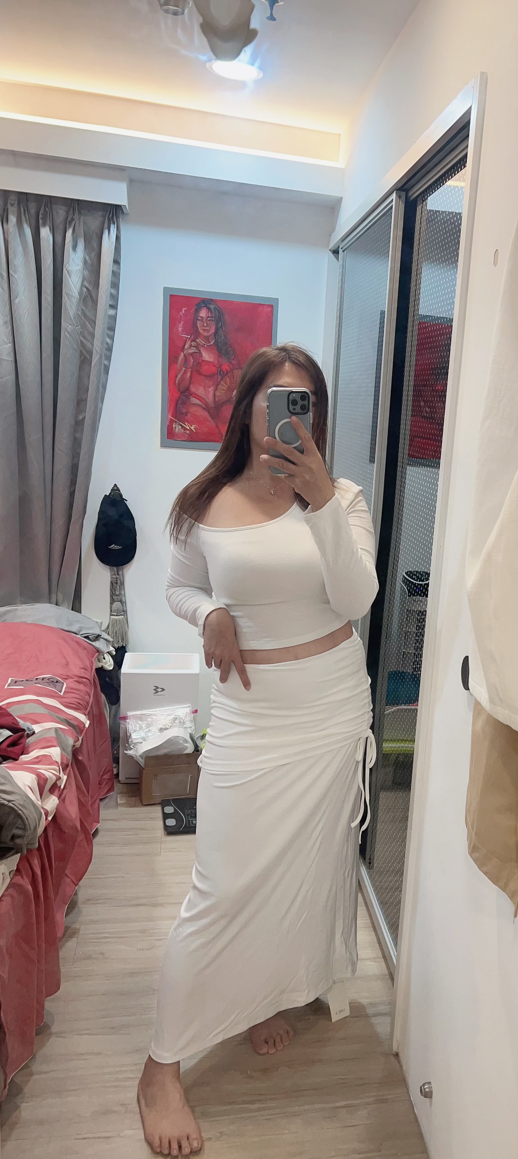反摺鬆緊腰側抽繩設計魚尾長裙