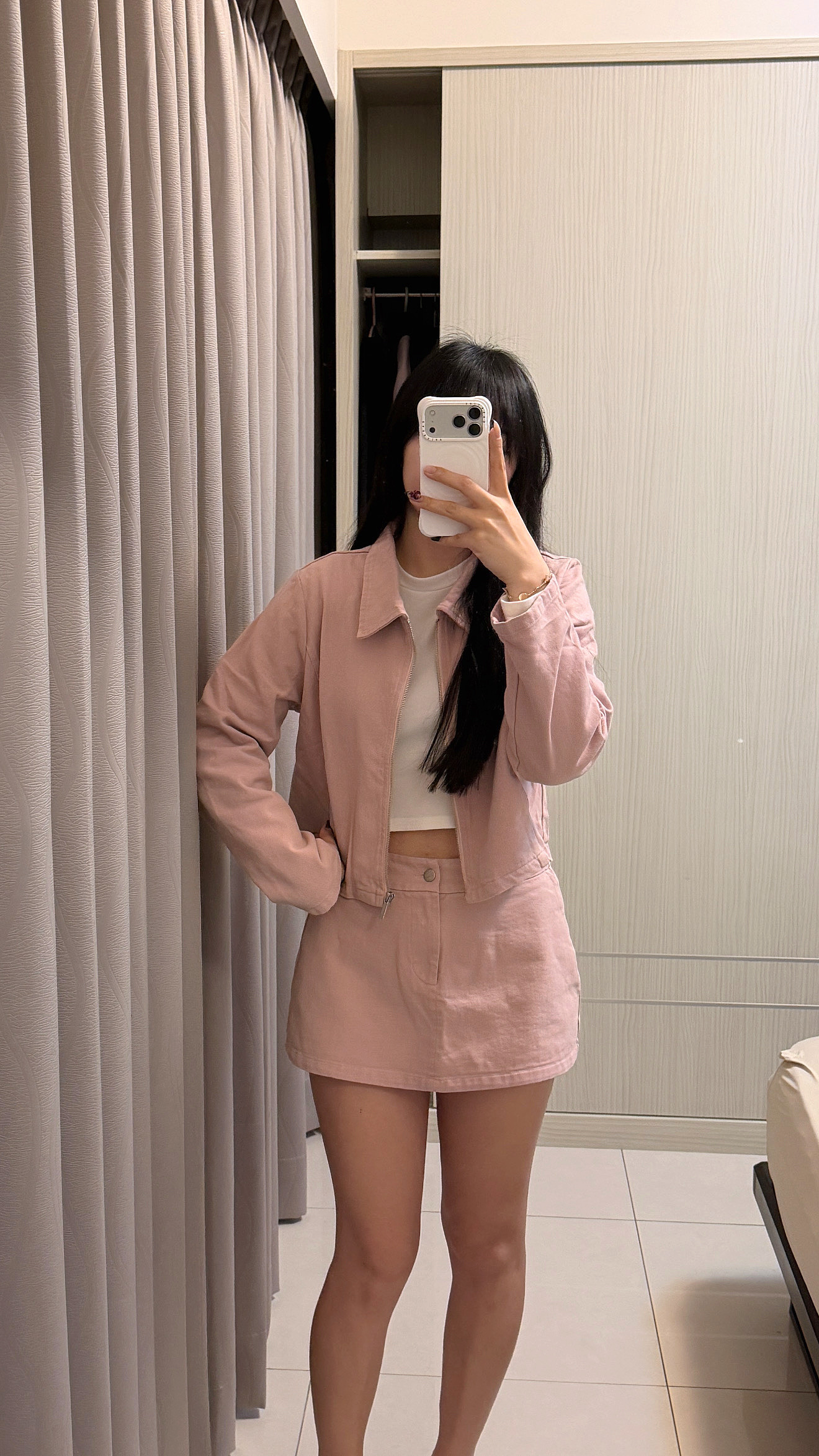 水洗斜紋布料質地具有挺度卻不厚重,加上古著風的洗舊感,散發著美式休閒氣息。短版剪裁修身顯瘦,還能優化整體身形比例。前開拉鍊方便穿脫,與洋裝或同材質的A字短裙搭配,即可完成融合帥氣與甜美的穿搭造型。