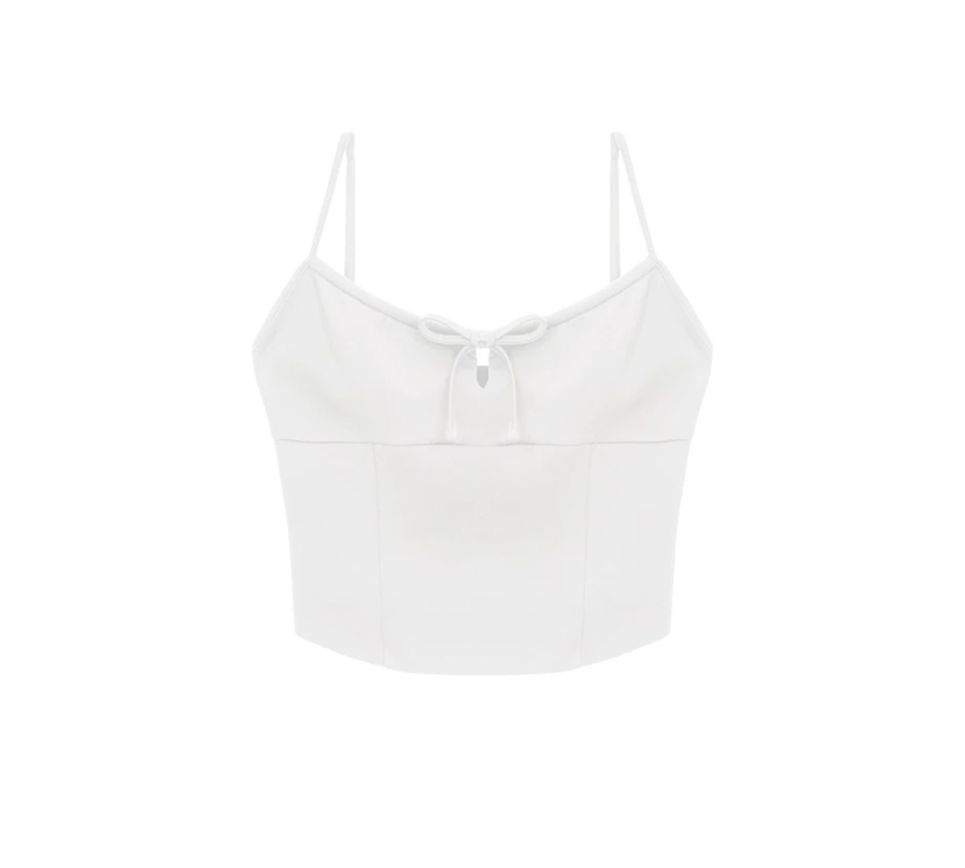 空氣棉材質親膚、透氣,具有絕佳舒適穿著感。這款背心的平口抽繩綁帶可隨意調整,賦予領口不同變化。獨特胸線剪裁,將胸型襯托得更加完美。