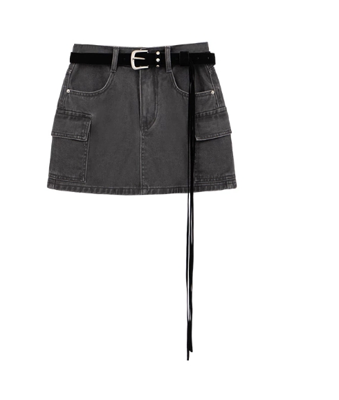 高腰工裝風口袋A字斜紋短裙(附皮帶)