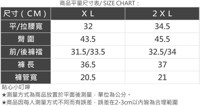 不確定自己的尺寸嗎?別擔心,我們幫你搞定。你可以參考下方商品評量尺寸表或是身材測量方式找到最適合你的尺碼,如果還有疑問也歡迎隨時聯繫我們的客服團隊。