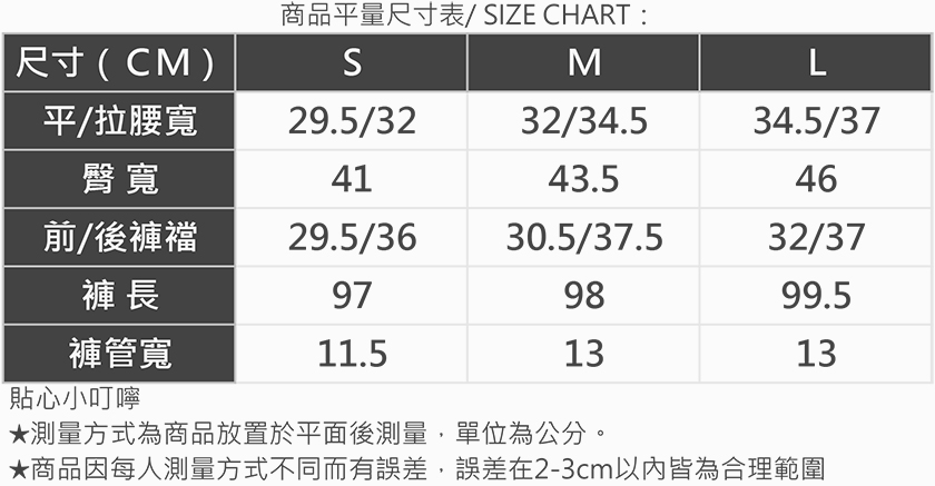 | 版型 | 貼身 | 1 | 2 | 3 | 4 | 5 | 寬鬆 |