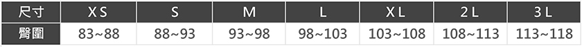 | 版型 | 貼身 | 1 | 2 | 3 | 4 | 5 | 寬鬆 |