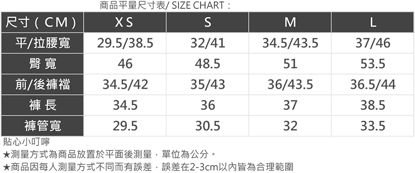 商品平量尺寸表