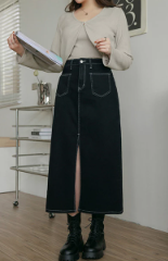 Front Slit Stitched Denim Jeans Maxi Skirt