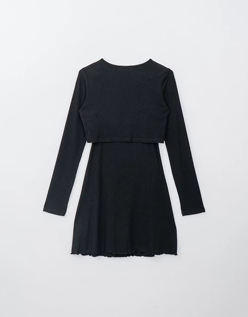 Ruffled Hem Mini Dress with Long Sleeve Cardigans Set Wear