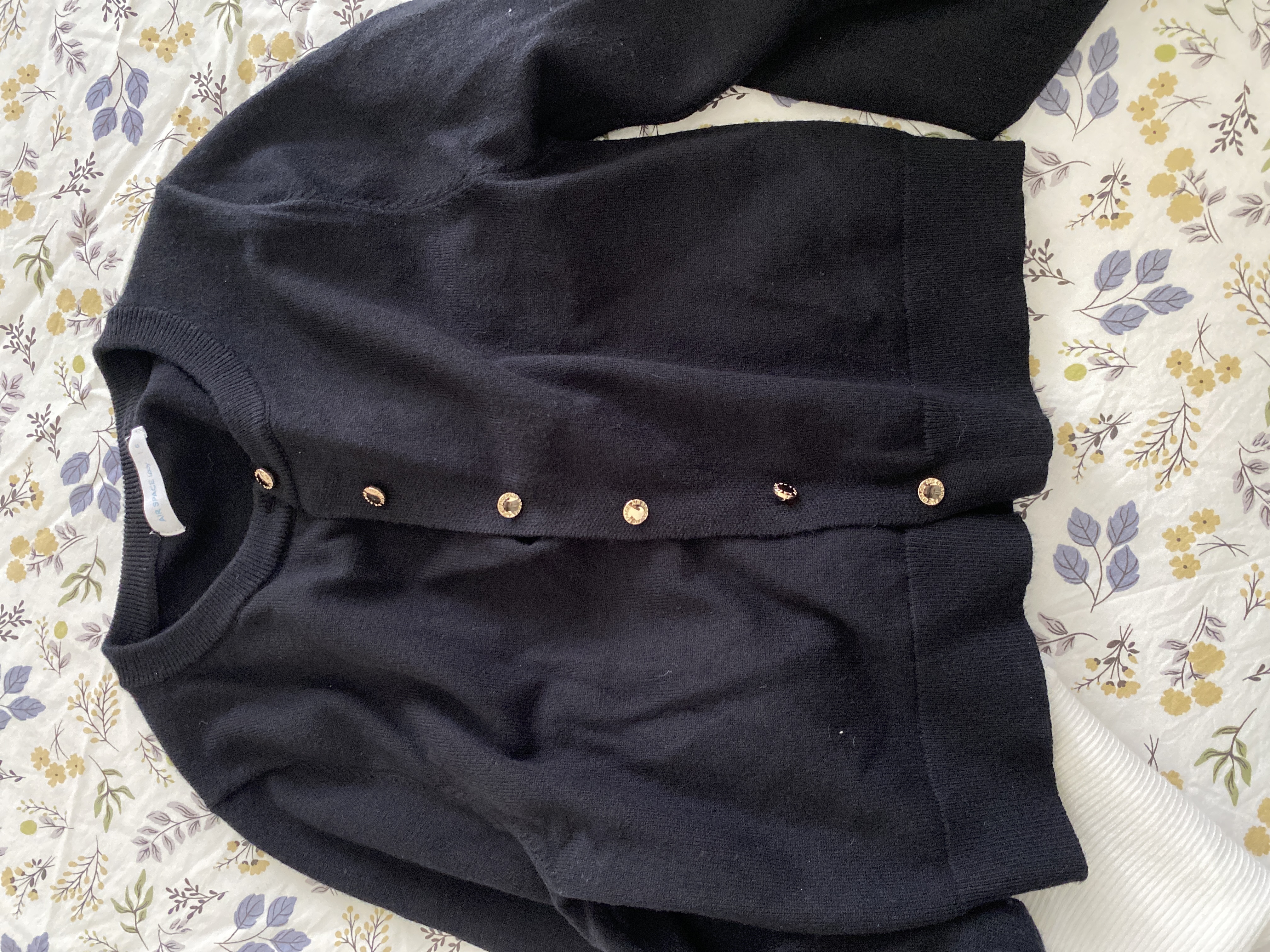 AIR SPACE Logo Gold Button Thick Knit Top