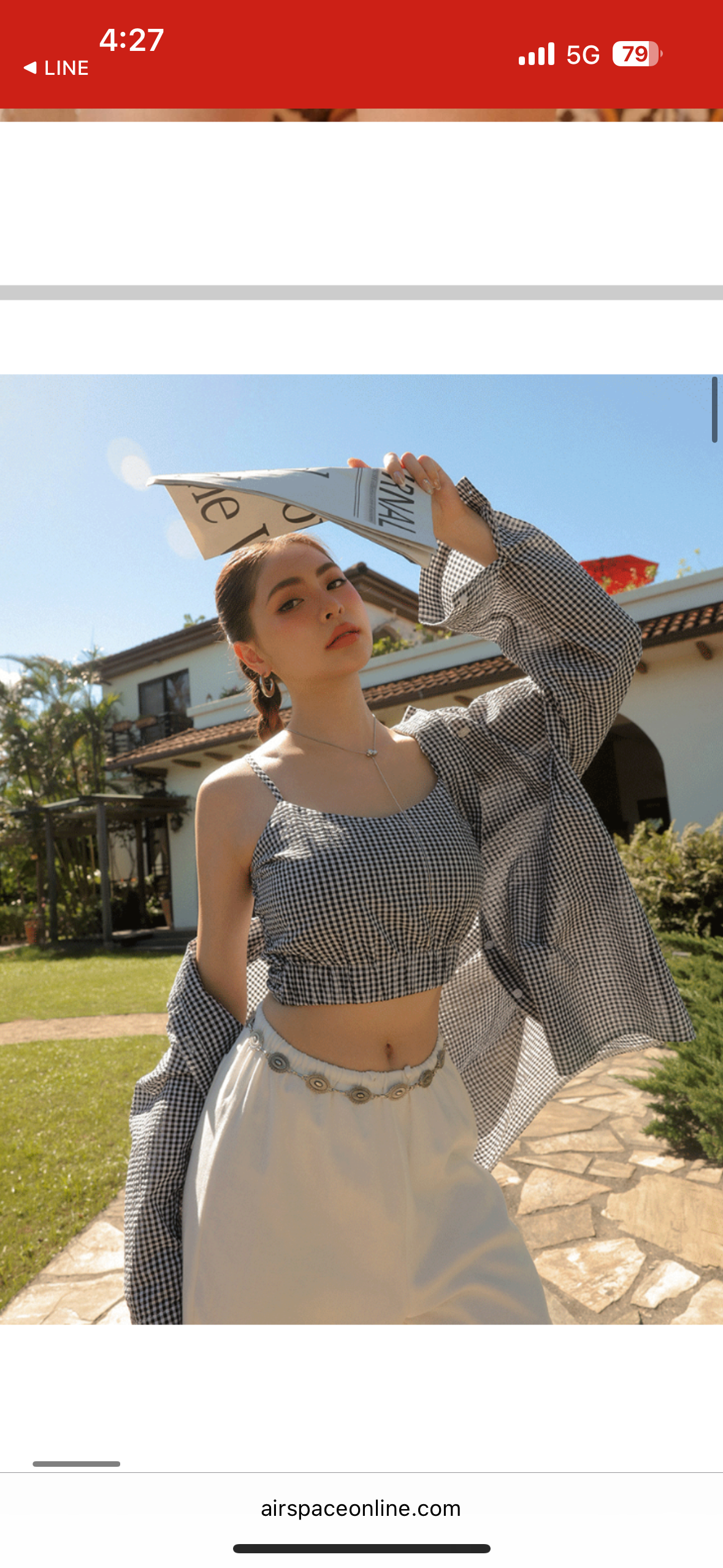 Gingham Outerwear Shirt and Elastic Hem Crop Top Set Wear