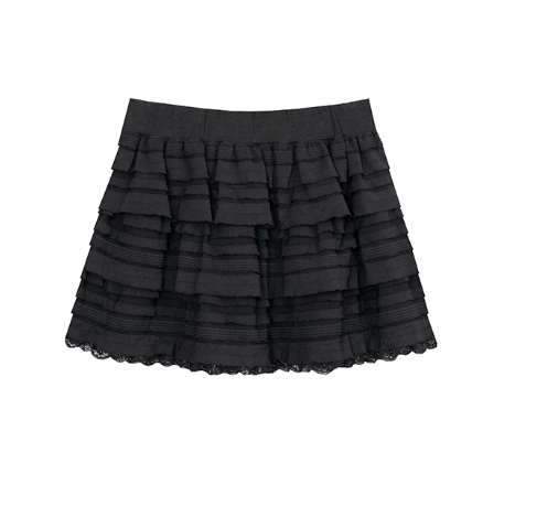 Layered Lace Trim Tiered Mini Skirt