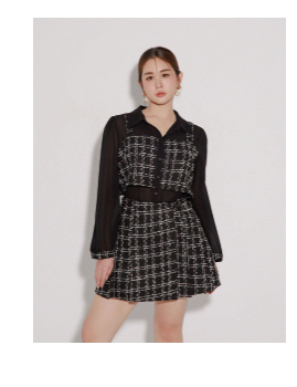 Tweed Style Checkered Panel Layered Button Front Shirt Blouse