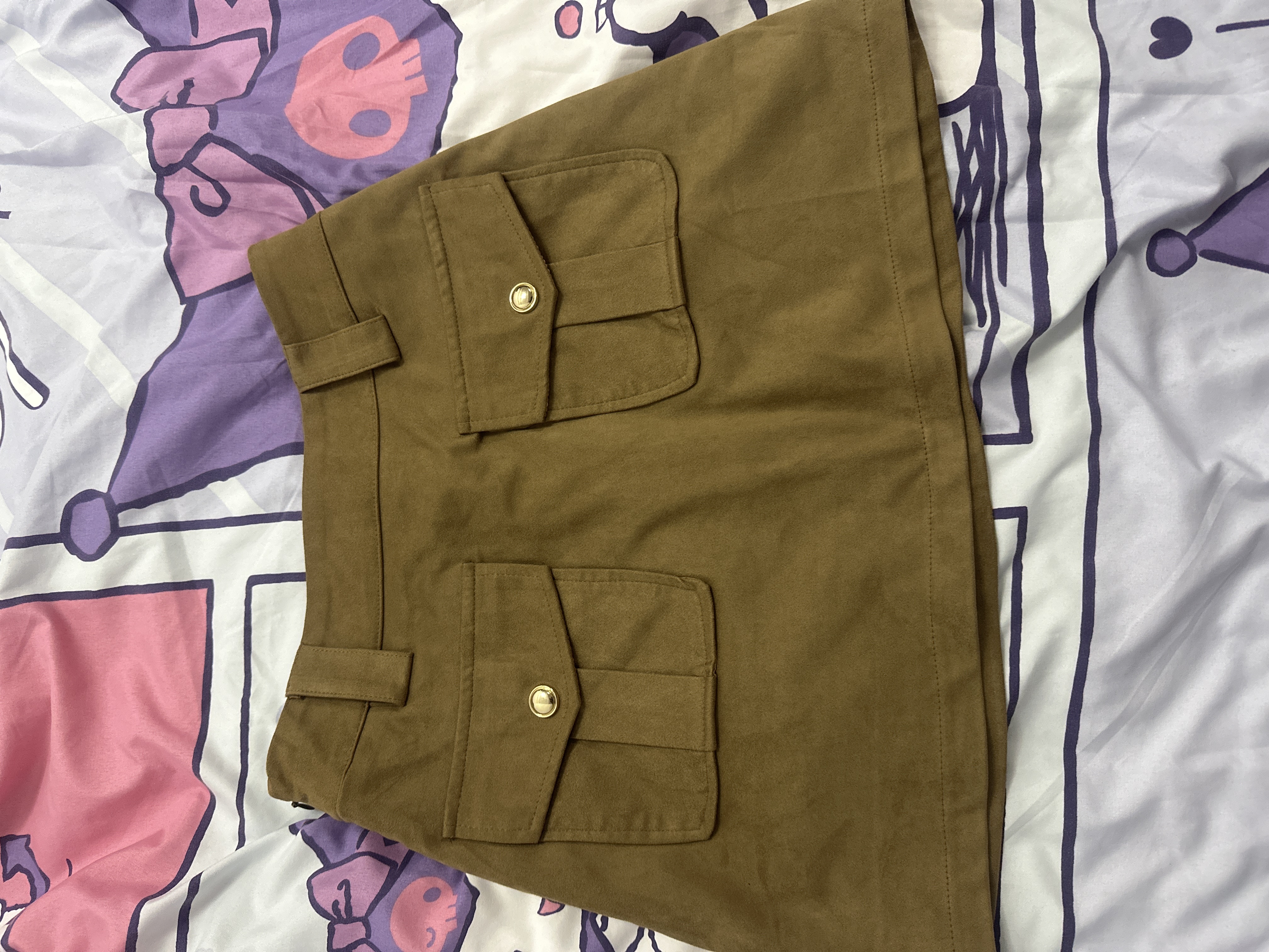 雙口袋皮革短裙
