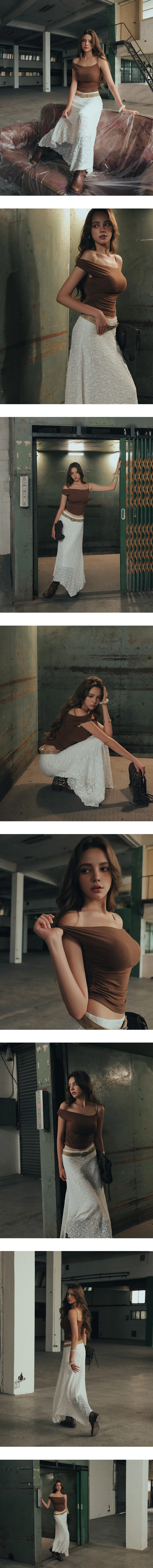 不對稱一字領單肩帶側抓皺短版BRA TOP