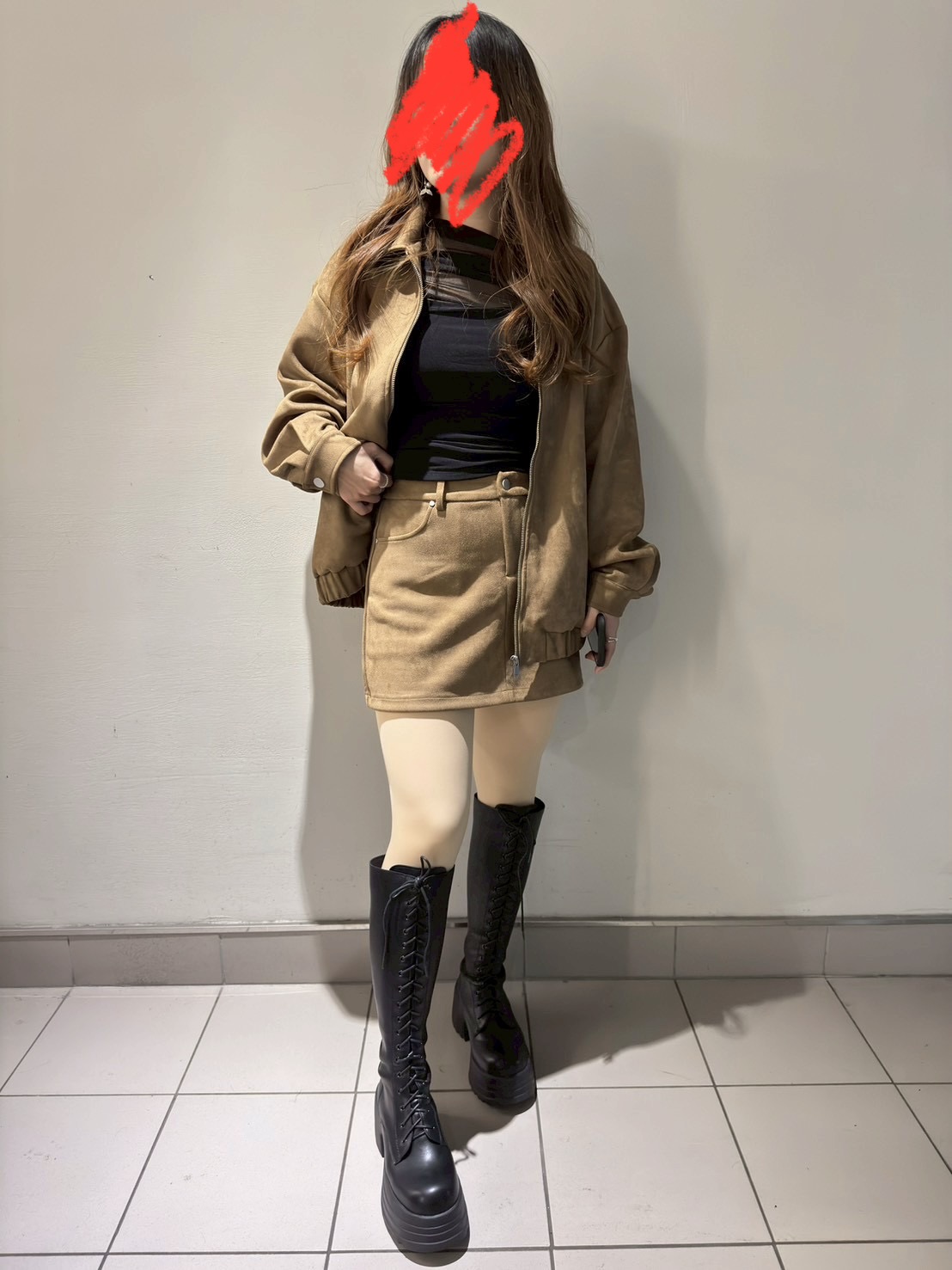 同款外套 套裝,麂皮裙子很顯瘦,喜歡裡面有褲子設計有安全感