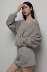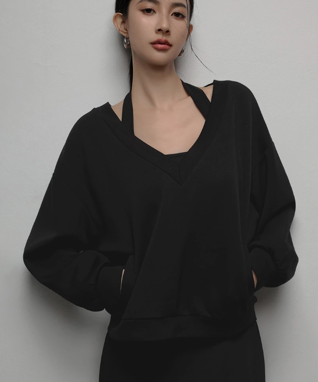 AIRY HOURGLASS Oversized V Neck Pullover Sweatshirt with Pockets