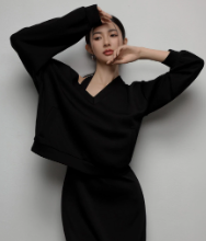 這件完全是顯瘦神器🥹 V領設計讓臉型看起來更小,落肩剪裁有慵懶感,搭同系列長裙直接變套裝感。 布料厚實但不悶熱,質感很好,不會軟塌塌。 163/58 穿正常尺寸剛好偏微寬鬆,是好看的那種鬆。 我會選「尺碼標準」。