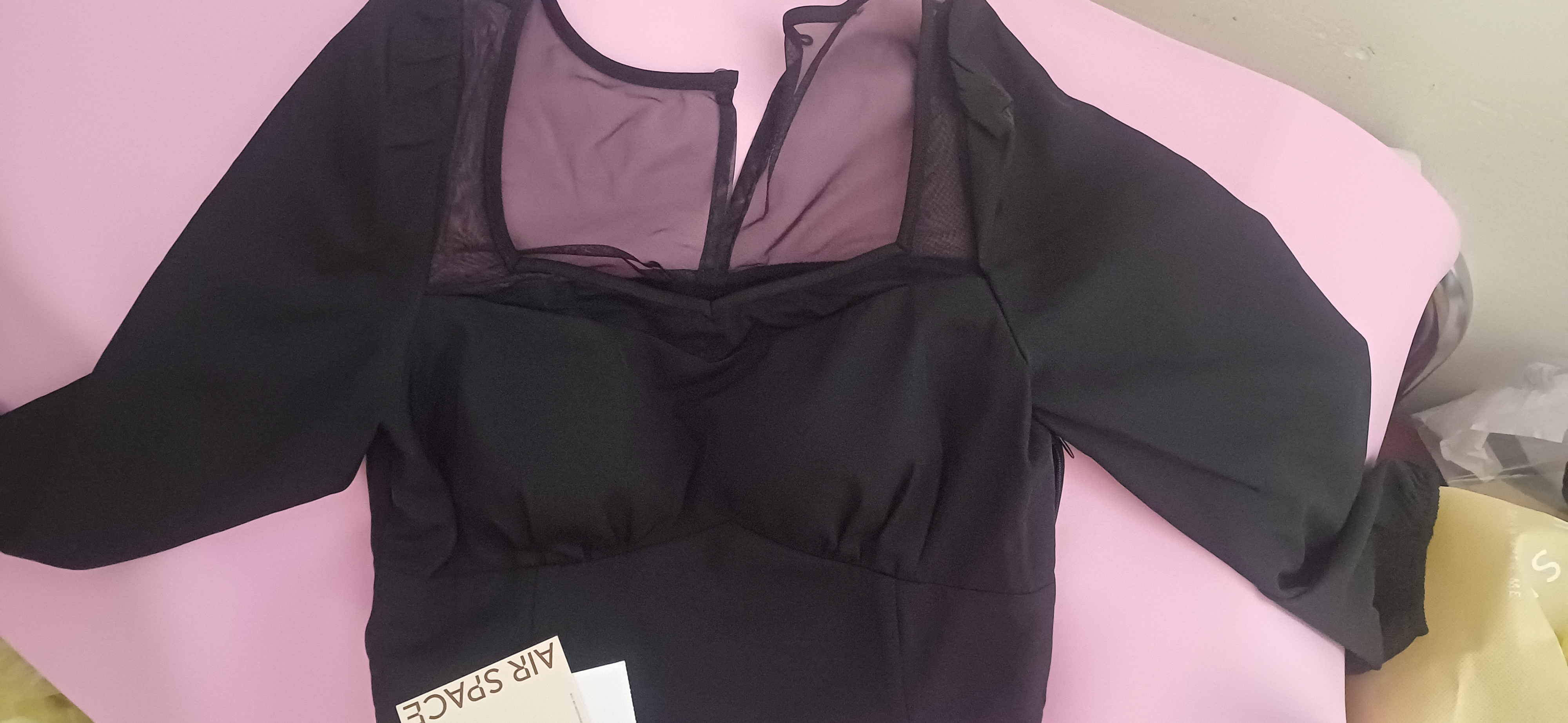 Mesh Panel Sweetheart Neck Long Sleeve Blouse
