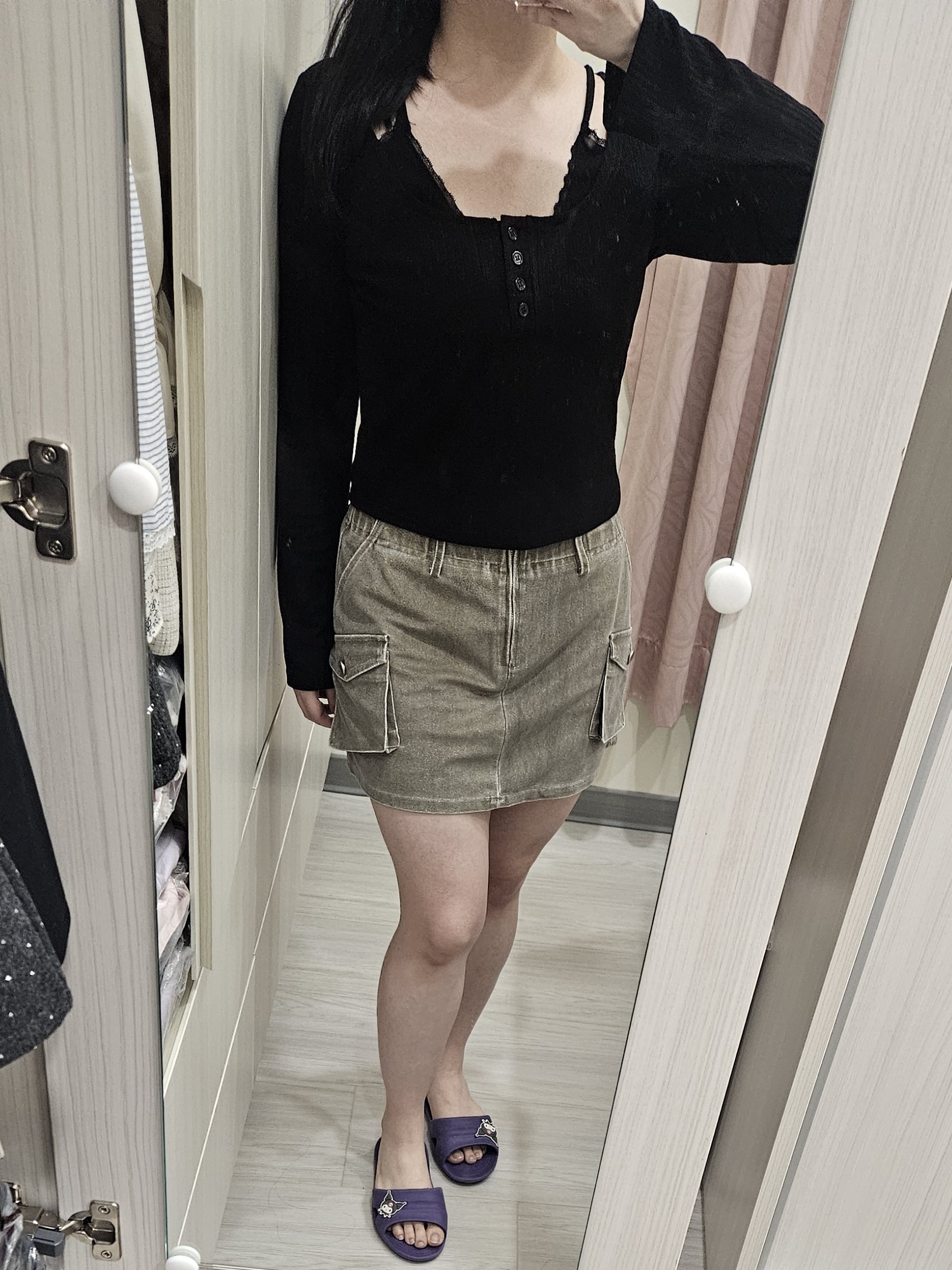 蕾絲的材質跟衣服的材質搭起來不會很突兀,很好看。穿起來也很顯瘦。