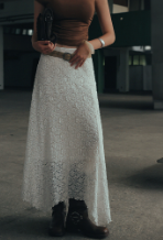 Lace Asymmetrical Hem High Waist Maxi Skirt