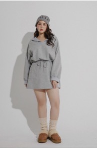 Drawstring Waist Sweat Mini Dress with Sailor Collar