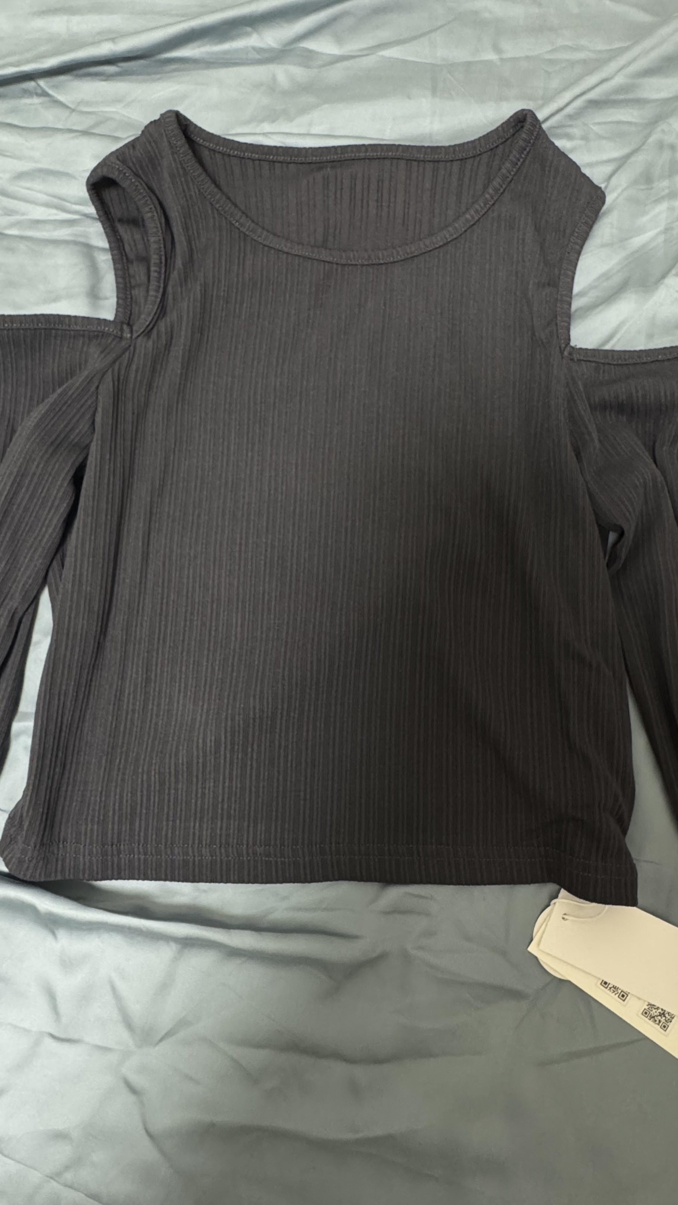 Basic Ribbed Cold Shoulder Long Sleeve Top