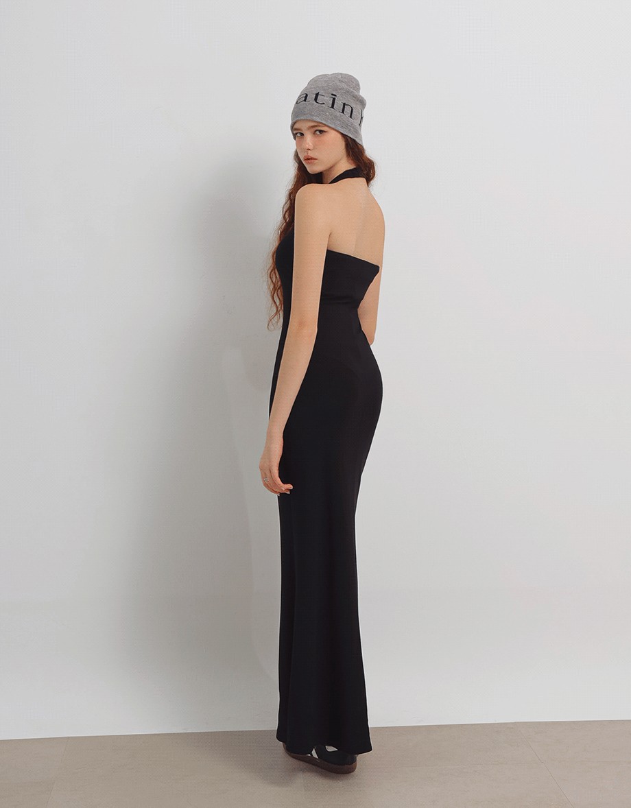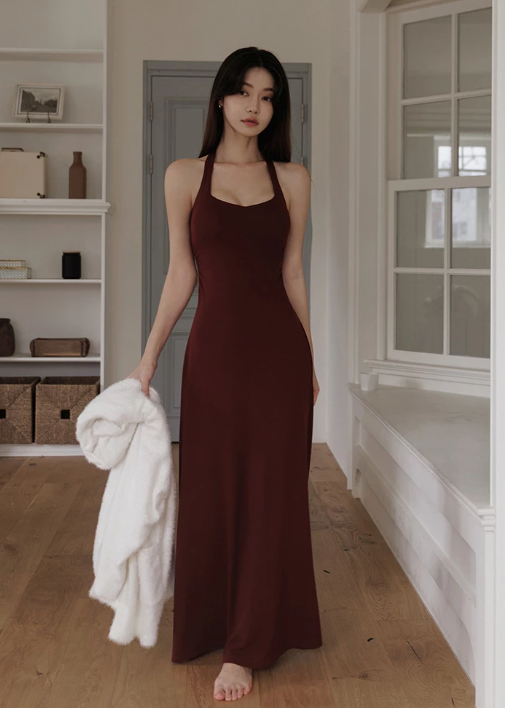 Heat Tech Collection Halter Neck Strapless Fitted Padded Maxi Dress