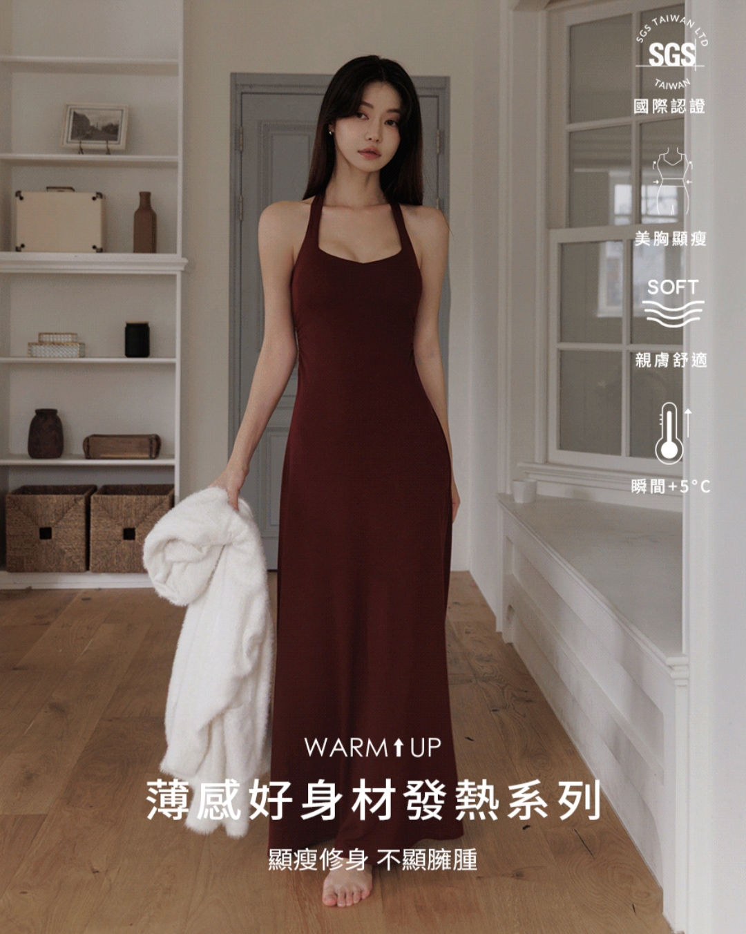 The WARM UP Heattech Collection is SGS-certified to provide up to +20°C of instant warmth. Crafted with soft, airy heat-retaining fibers, it feels light on the skin while keeping you comfortably warm. The smooth, skin-friendly material refines the silhouette and highlights a naturally slim outline, giving you warmth with a polished, feminine touch.