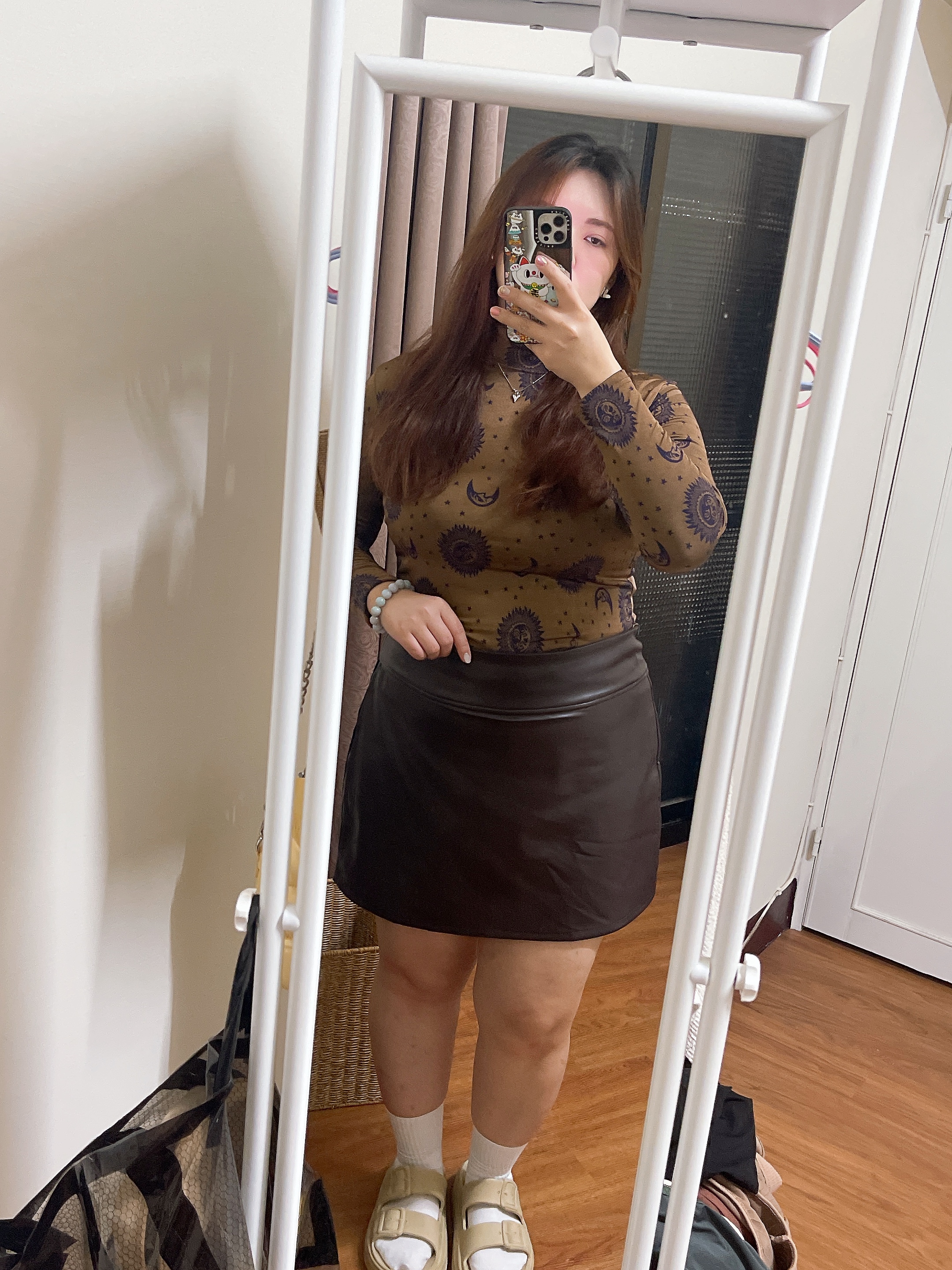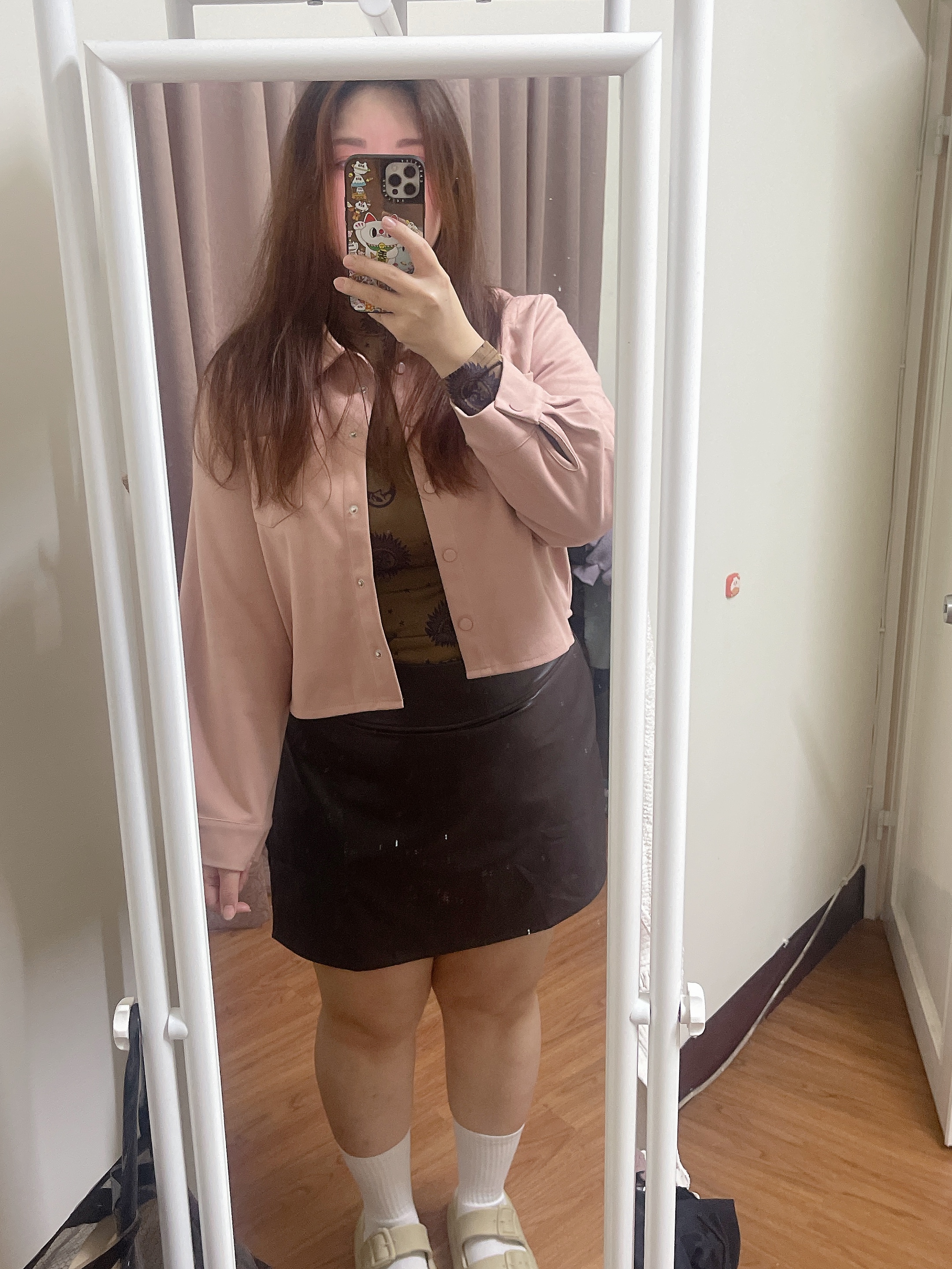終於找到一件不需要改腰圍大小的皮裙 內短褲設計不需要怕走光