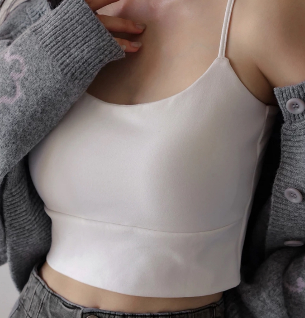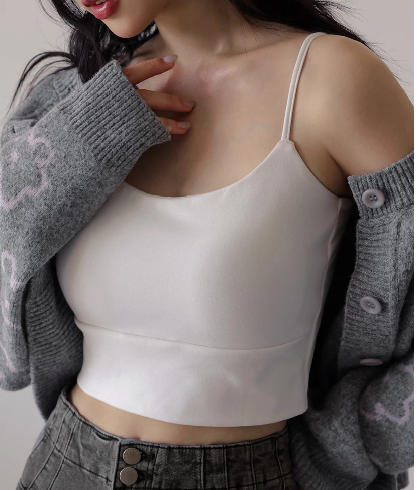 【Heat Tech】Basic Soft Stretch Spaghetti Strap Fitted Camisole Bra Top