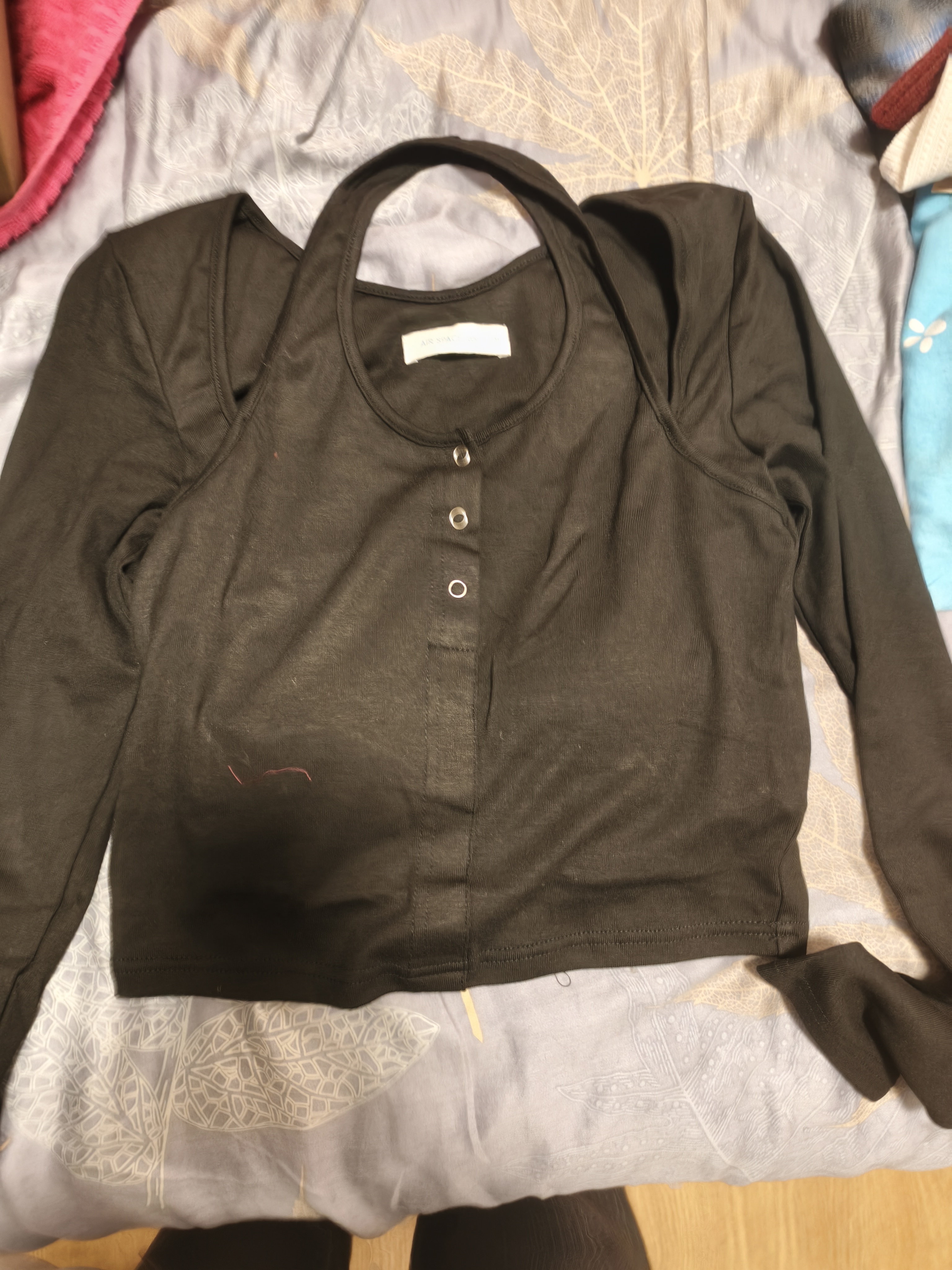 This faux two-piece top combines a halter-style tank with a long-sleeve layer to add depth to a classic base. The snap-button front and shoulder cutout details create subtle visual interest. Designed with built-in removable padding, it eliminates the need for additional undergarments and offers an easy, practical option for everyday styling.