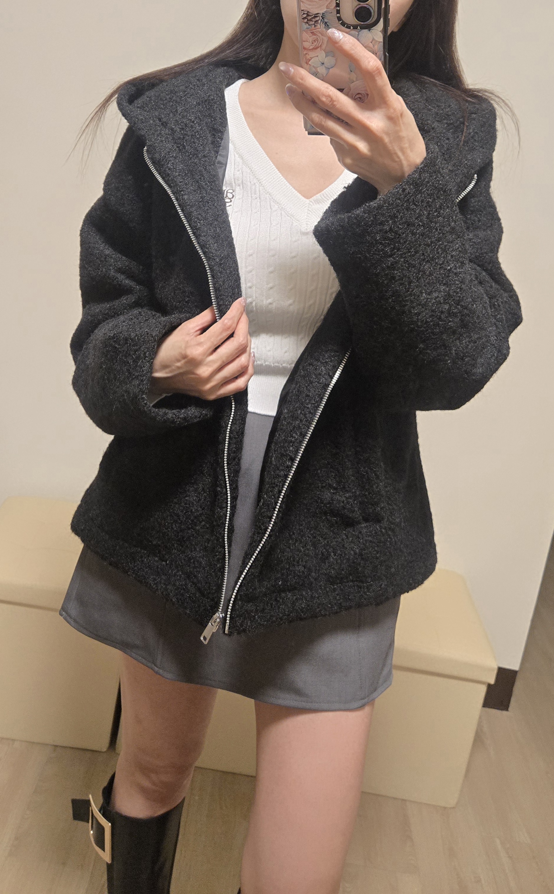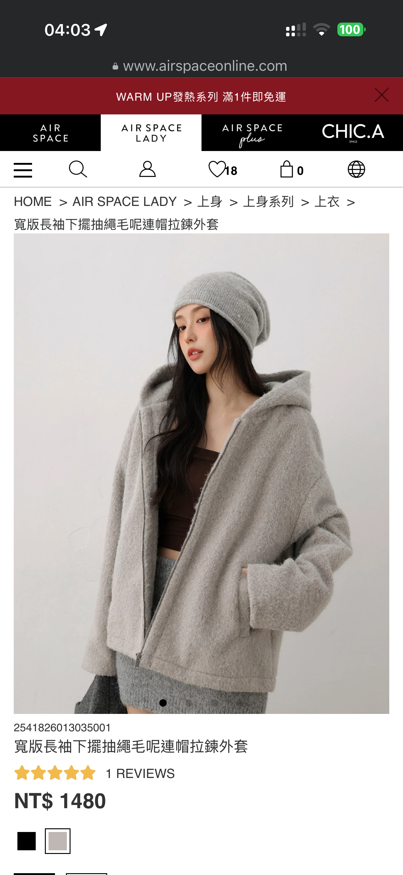 超級好看,本來現場是隨手抓了黑色來穿,現場展示直接抓好抽繩穿上好看可愛又帥氣,結果問了另一色灰色拿來穿比較亮眼,還是選了灰,抽繩拉起來真的比賣場上的模特兒照片好看很多,推~