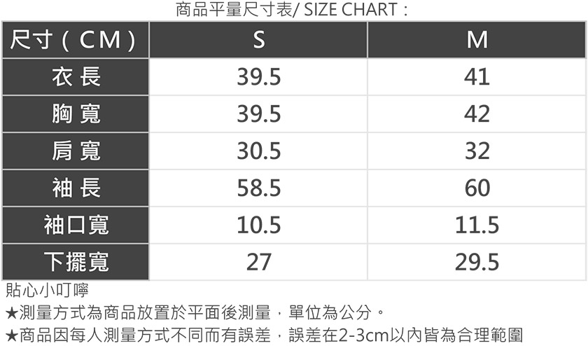 不確定自己的尺寸嗎?別擔心,我們幫你搞定。你可以參考下方商品評量尺寸表或是身材測量方式找到最適合你的尺碼,如果還有疑問也歡迎隨時聯繫我們的客服團隊。