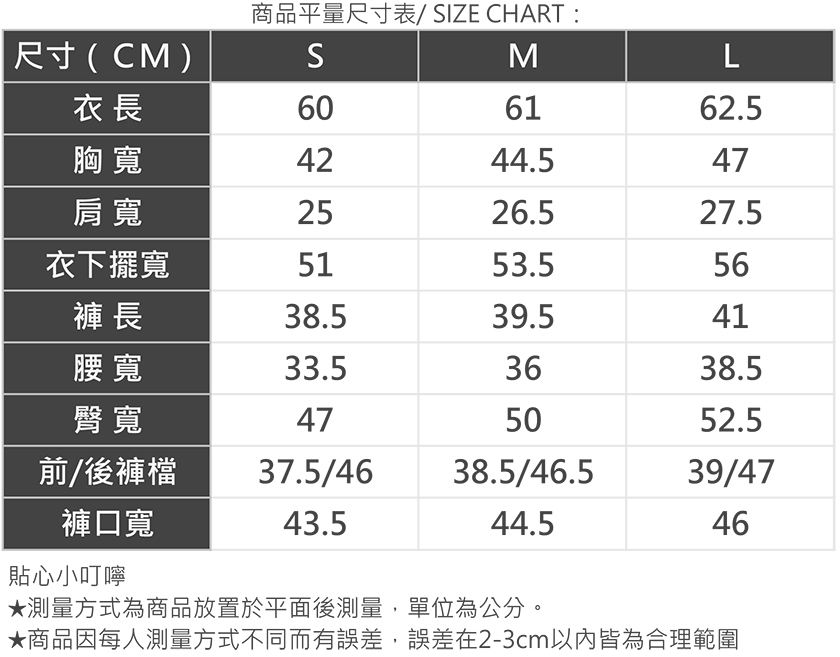 商品平量尺寸表