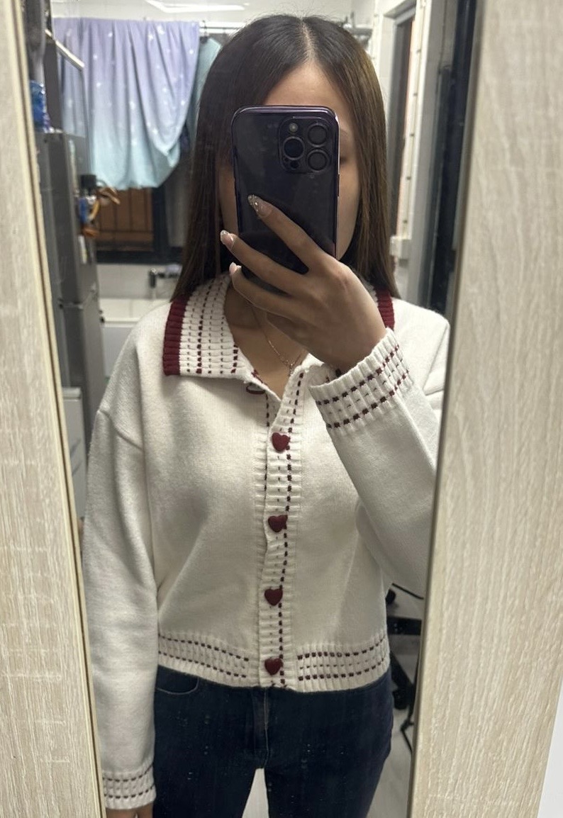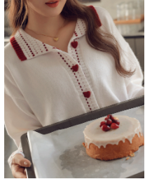 氣質紅白搭配愛心扣很可愛