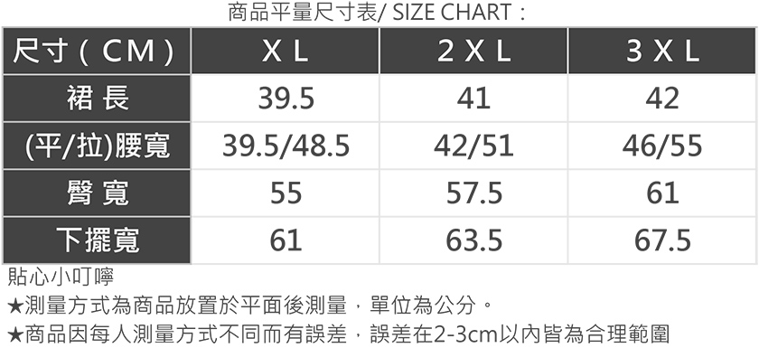 你可以參考下方商品評量尺寸表或是身材測量方式找到最適合你的尺碼,