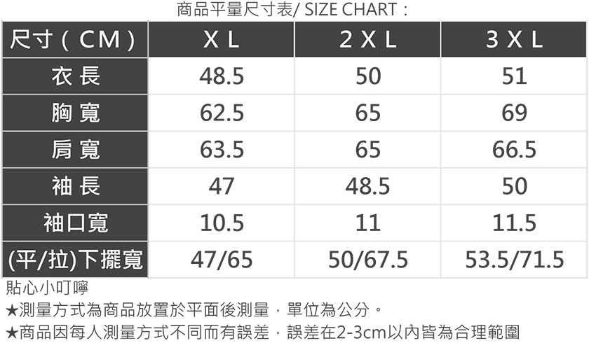 你可以參考下方商品評量尺寸表或是身材測量方式找到最適合你的尺碼,