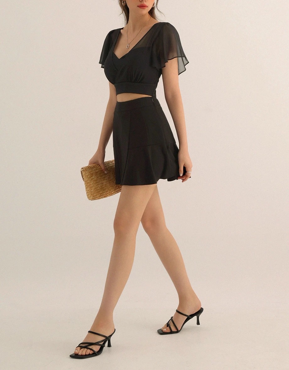 Chic High Waisted Flare Hem A Line Mini Skirt
