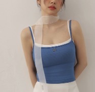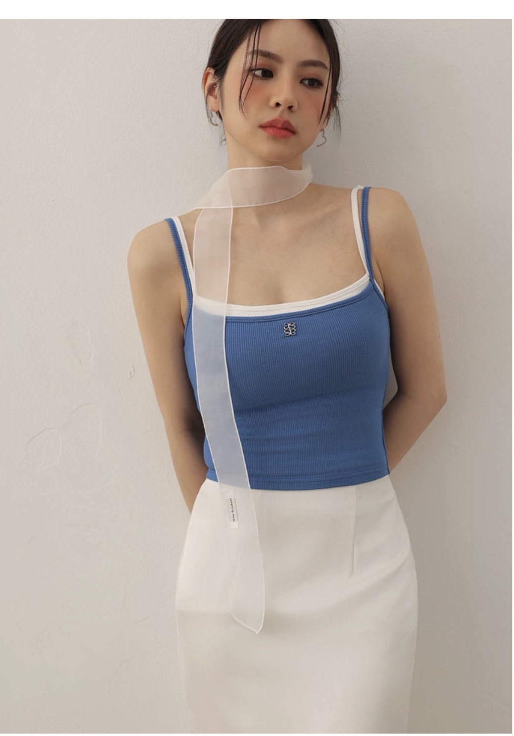 AIR SPACE Logo Embroidered Ribbed Spaghetti Strap Cami Padded Top
