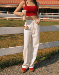 簡單俐落的白寬褲 後面有可愛的Kitty亮點