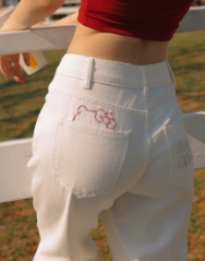 【Hello Kitty聯名】後口袋刺繡圖案白色牛仔褲