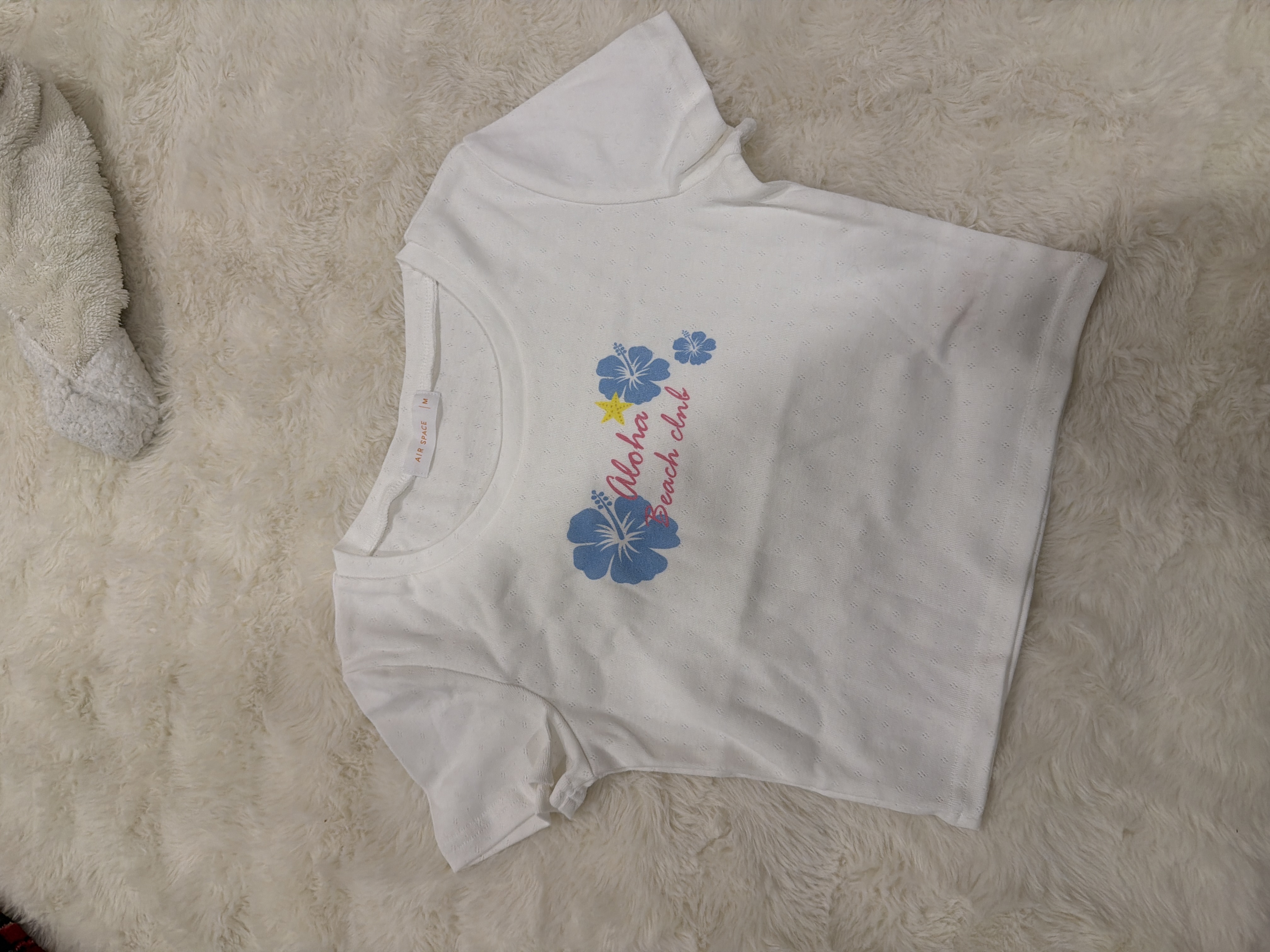 Aloha Beach Club Floral Embroidery Detail Ribbed Fitted Crop Top