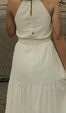 繞頸綁帶鏤空削肩開衩蛋糕長洋裝(附胸墊) 颜色很好看