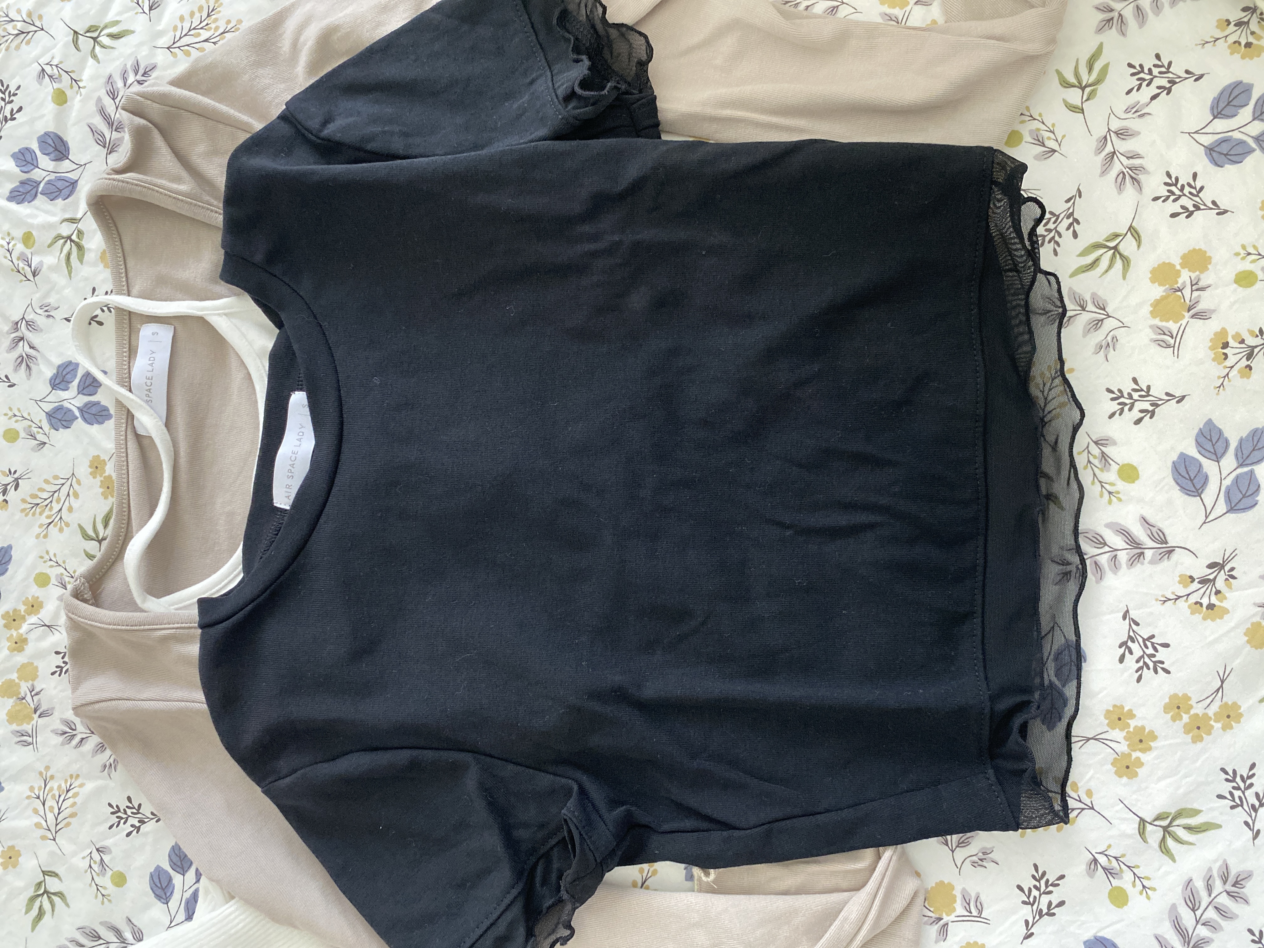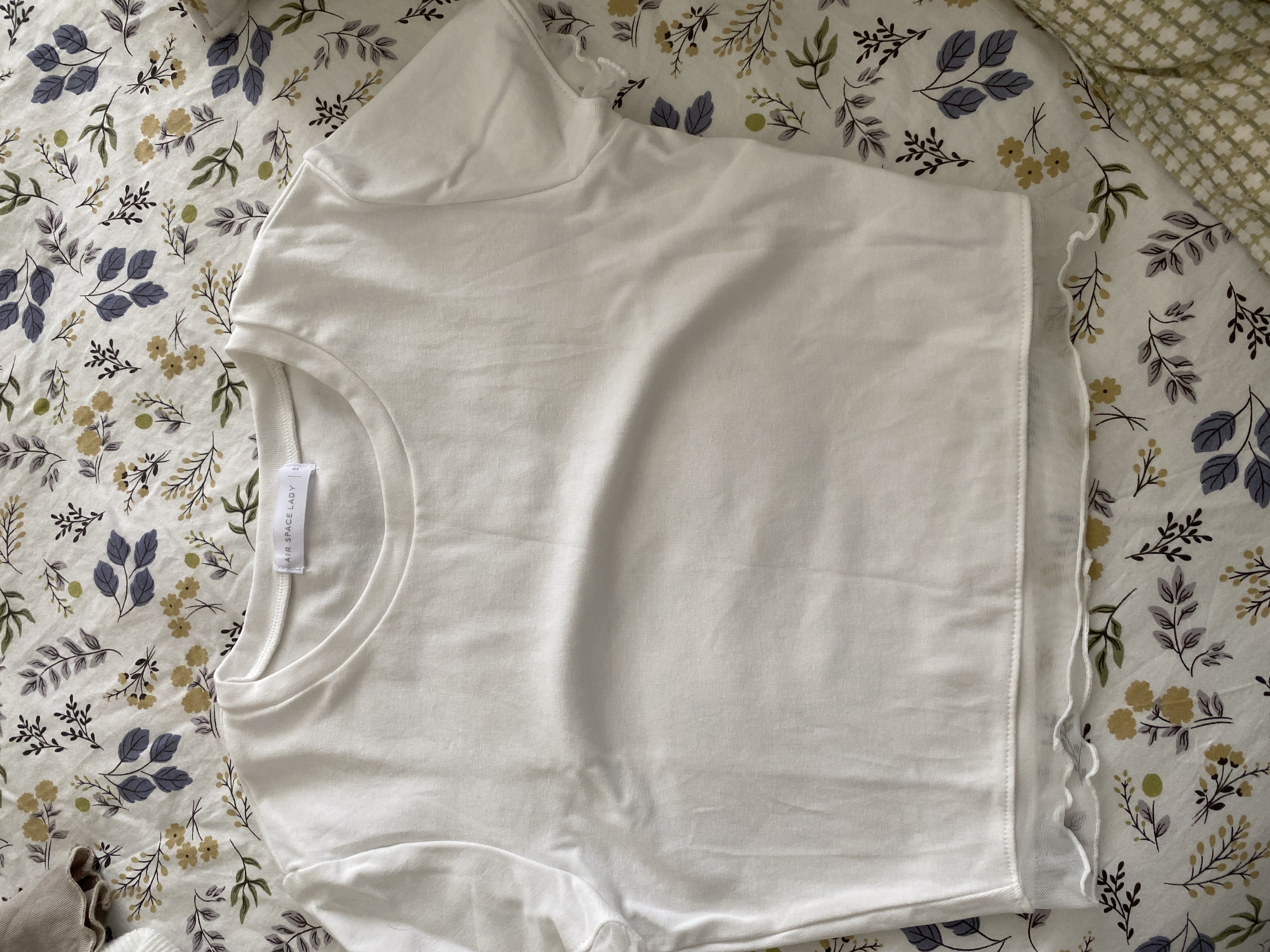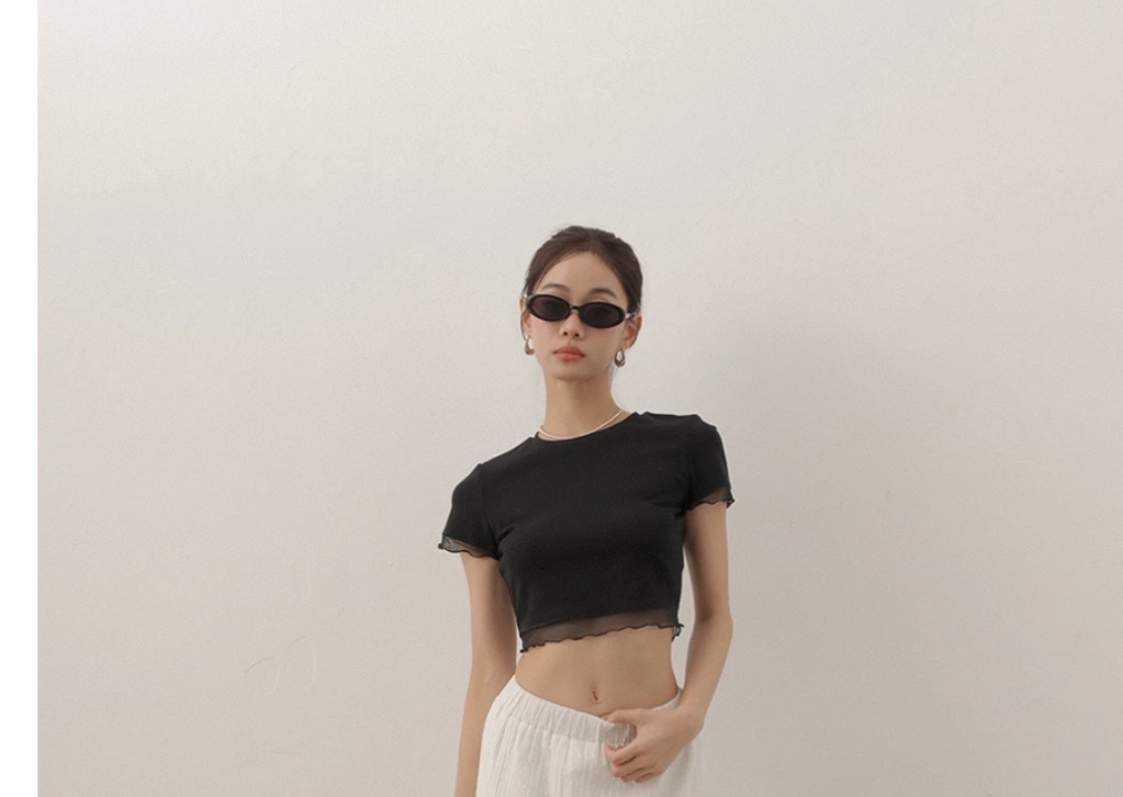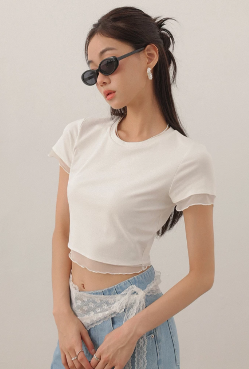 Layered Sheer Lettuce Edge Crew Neck Fitted Tee