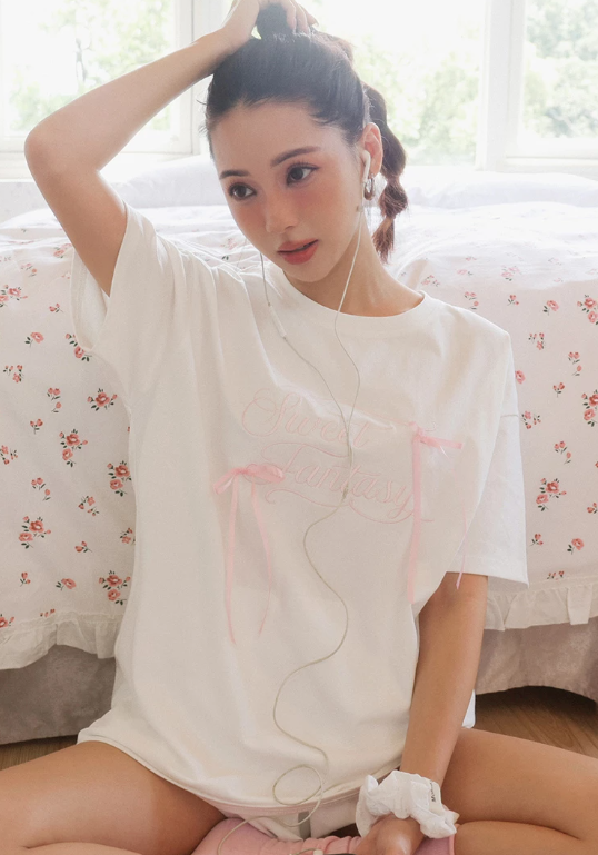 Ribbon Bow Embroidered Oversized Letter Tee