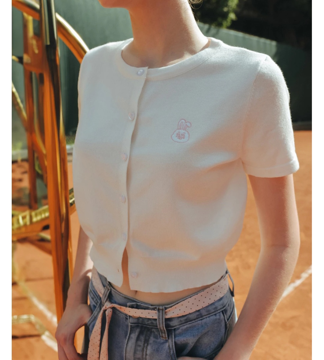Lyra & Toby】 刺繡圓領短袖針織衫