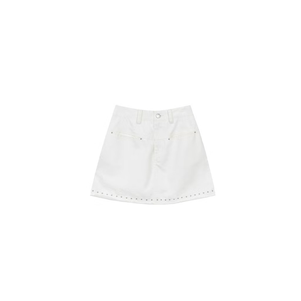【Stain Resistant】Metal Studded A Line Jeans Denim Skirt