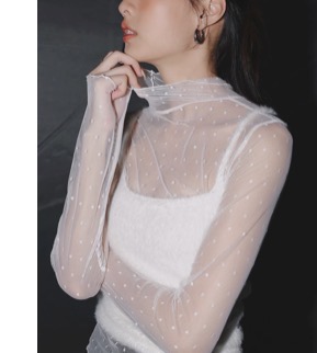 Turtleneck Sheer Ruffle Trim Top - Plain / Polka Dot Design