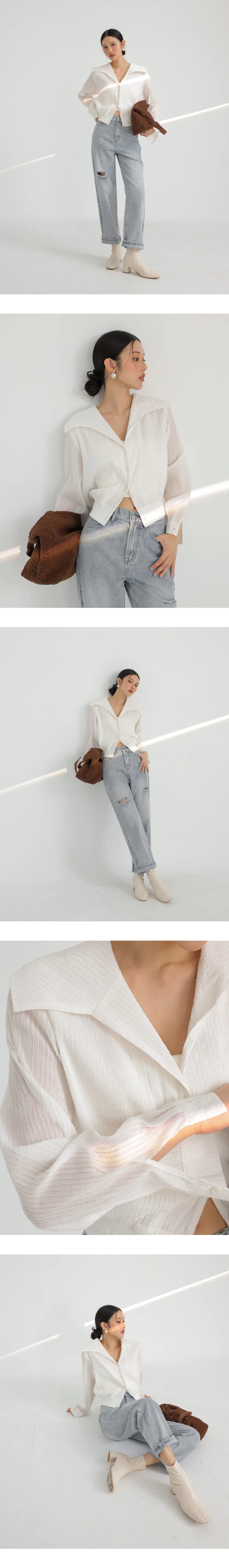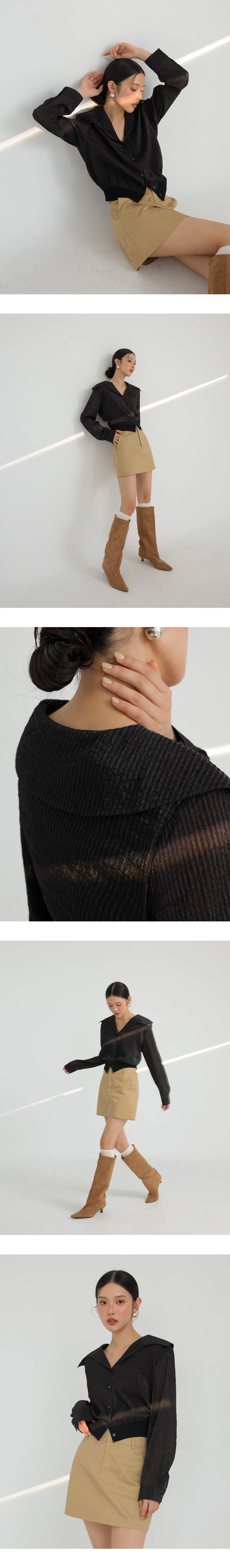 商品描述:大翻領設計/下擺拼接羅紋